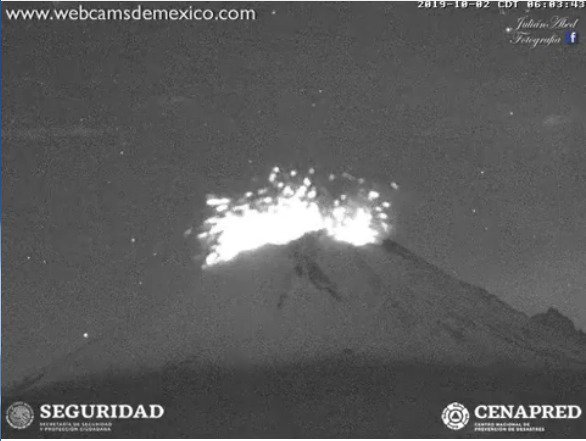 El #Popocatépetl presentó 2 #Explosiones que arrojaron material incandescente, una a las 04:08 horas de 2,000 metros y otra a las 06:03 horas de 1,500 metros. Derivado de esta actividad se reporta #CaídaDeCeniza en los municipios de #Ayapango y #Ecatzingo. #PrevenirEsVivirpic.twitter.com/gm5zCO9lsn