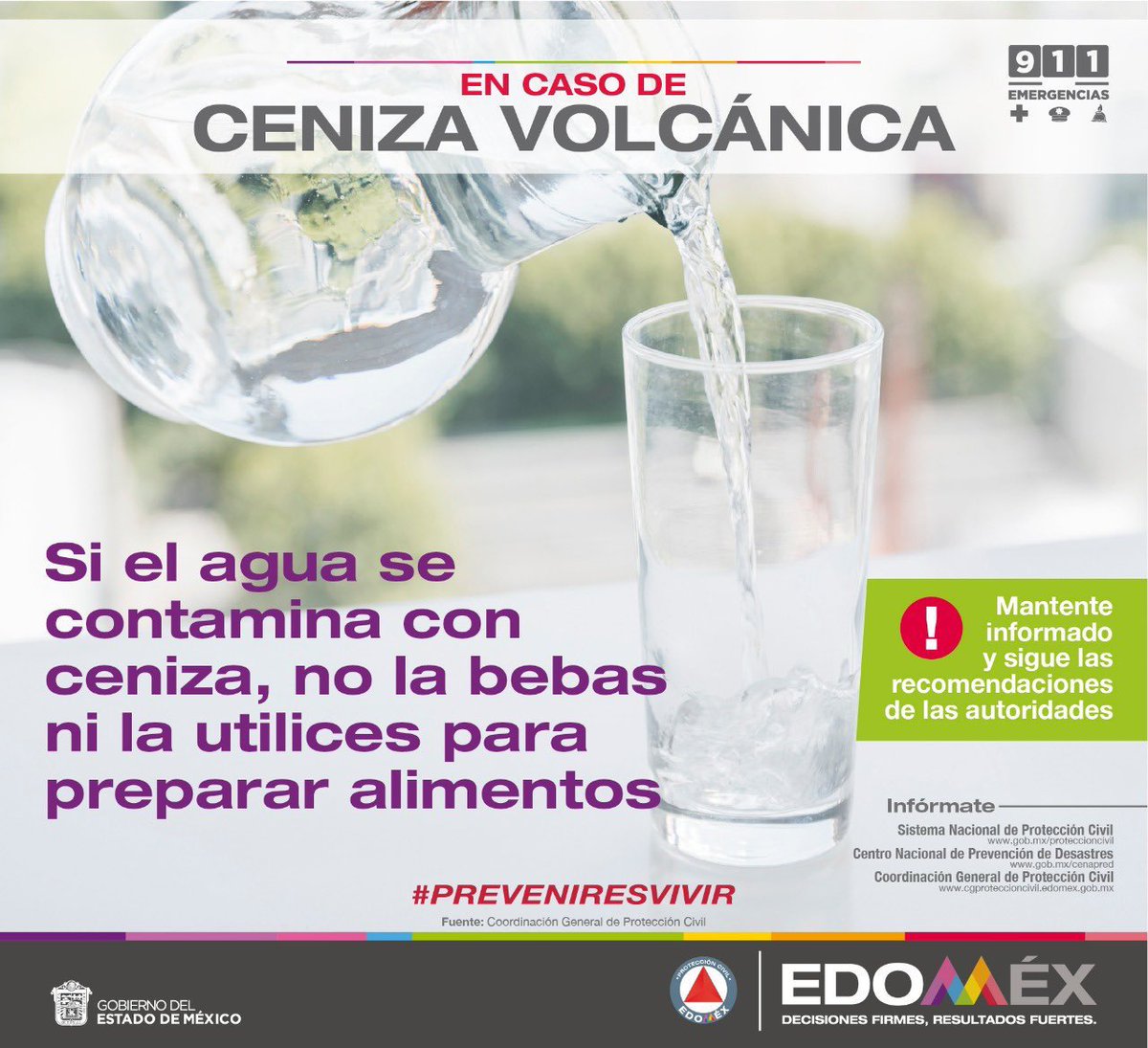 Ante la #CaídaDeCeniza volcánica, cubre depositos de agua, si se contamina no la bebas ni la utilices para preparar tus alimentos #PrevenirEsVivirpic.twitter.com/Z3K9CEytRJ