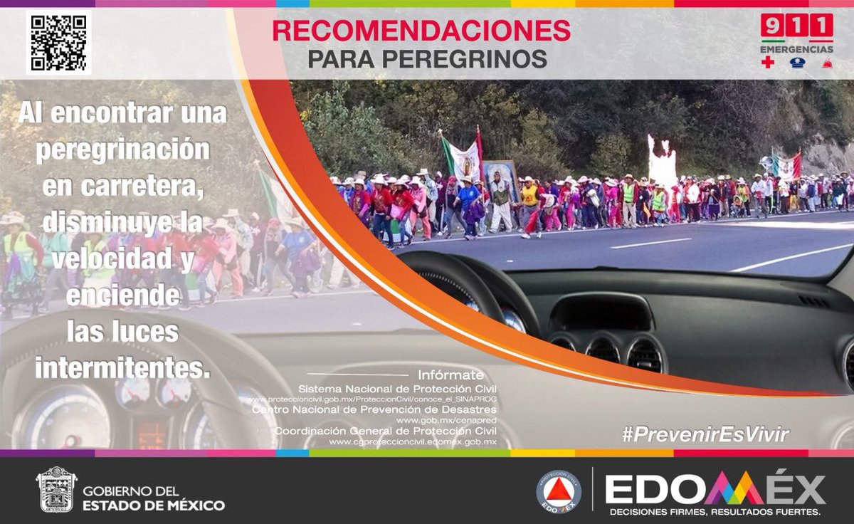 Si encuentras una #Peregrinación en tu camino, baja la velocidad y enciende las luces intermitentes #PrevenirEsVivirpic.twitter.com/ktXsvYjrT7