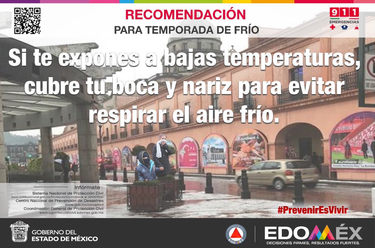 En esta temporada de #BajasTemperaturas, al salir de un lugar cálido debes cubrirte boca y nariz para evitar aspirar el aire #Frío #PrevenirEsVivirpic.twitter.com/iDUhcEGG30
