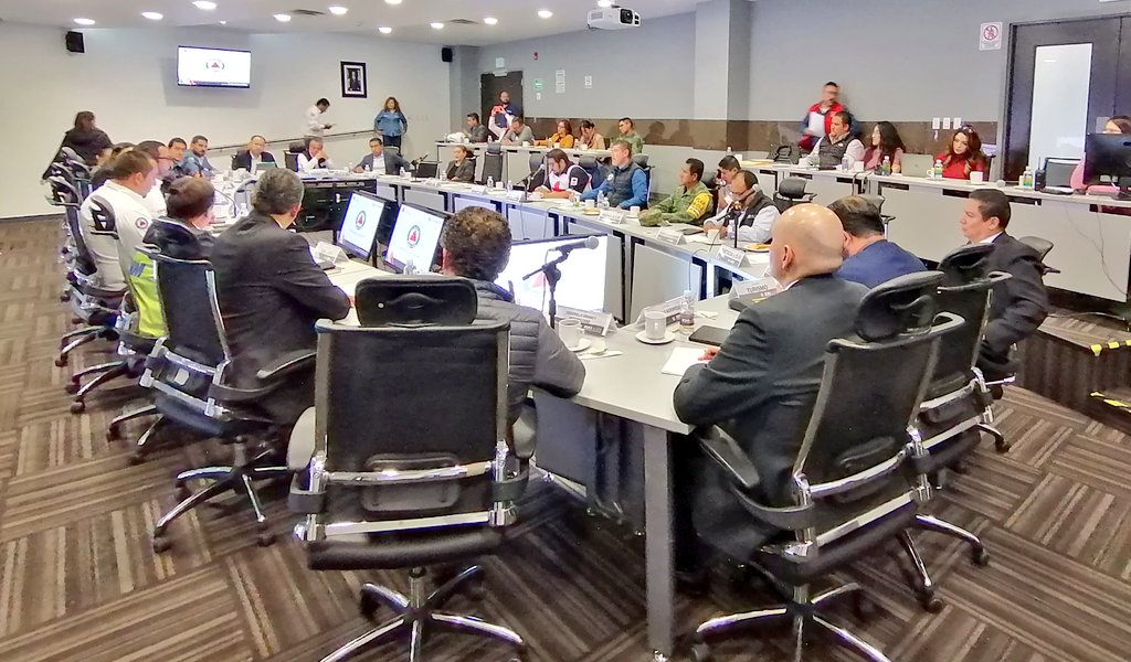 En compañía del Titular del @C5Edomex y representantes de las dependencias que conforman el Comité Estatal de Emergencias, llevamos a cabo Reunión de Coordinación previa al #MacroSimulacro2020. #PrevenirEsVivirpic.twitter.com/mecjBZ6lJV