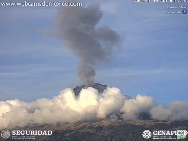 El #Popocatépetl presentó 2 #Exhalaciones con bajo contenido de ceniza una a las 08:13 horas con una altura de 1,200 metros en dirección al norte y la segunda a las 08:54 horas con una altura de 1,200 metros en dirección al nor-noroeste. #PrevenirEsVivir @webcamsdemexicopic.twitter.com/DbO2CelGLD