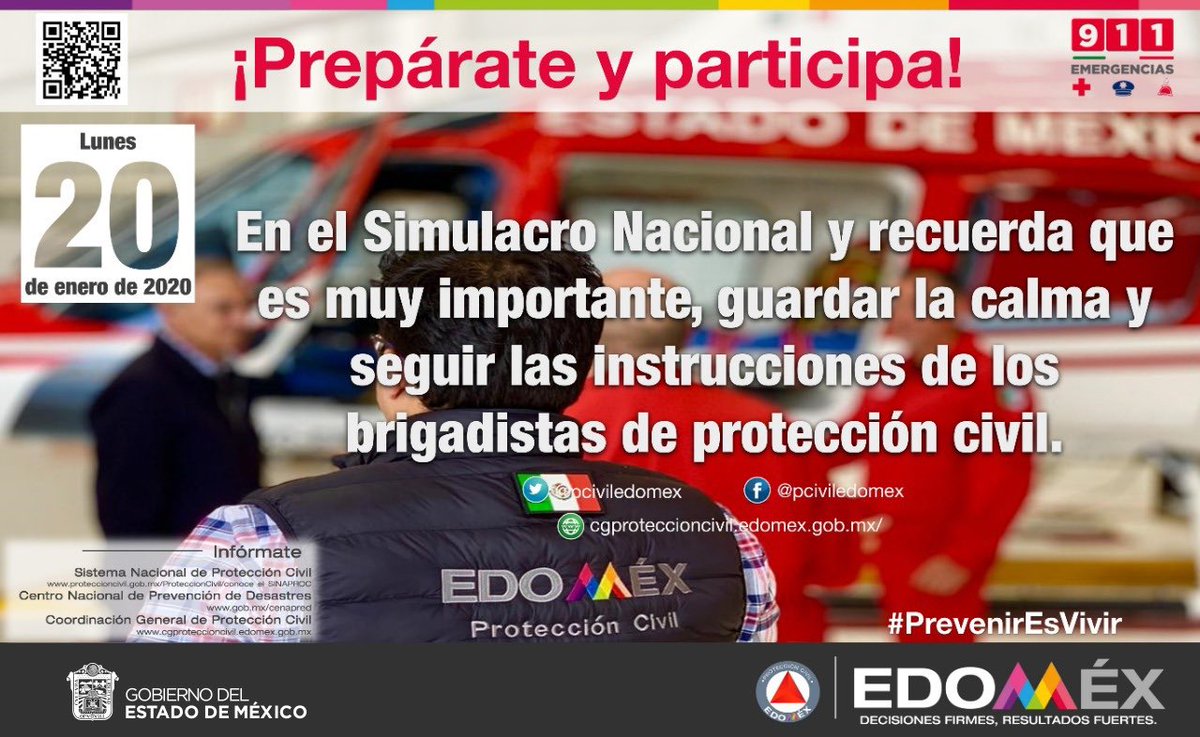 #Recuerda hoy 20 de enero es el #MacroSimulacroNacional2020 a las 11:00 hrs. Participa, por una cultura de la #ProtecciónCivil #MacroSimulacro2020EdoMéx #PrevenirEsVivir @pciviledomexpic.twitter.com/XIPuZVm2iy