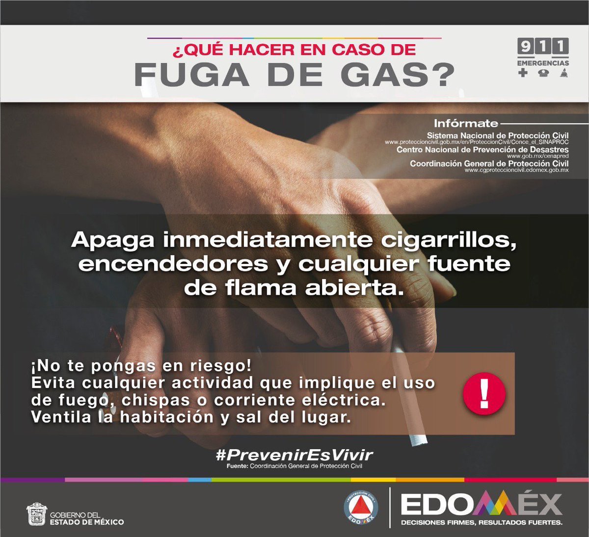En caso de #FugaDeGas, apaga cigarrillos, encendedores y cualquier fuente de flama #PrevenirEsVivirpic.twitter.com/SMYxgEer7K