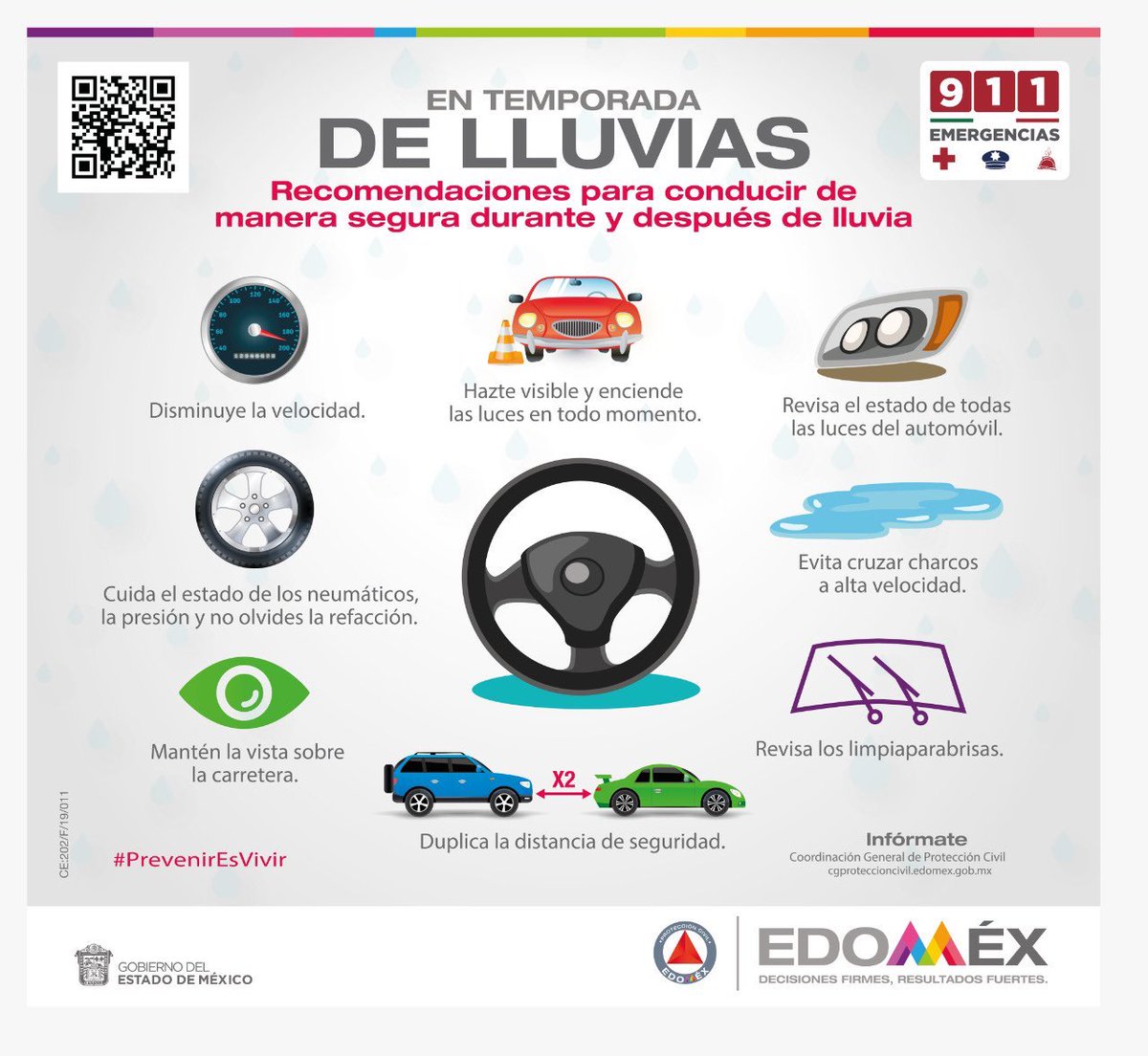 Ante la #Lluvia es importante que manejes con #Precaución, duplica la distancia entre cada coche #PrevenirEsVivir @pciviledomexpic.twitter.com/3rmWzM64bE