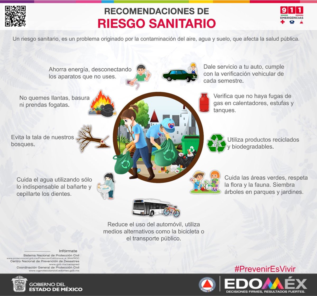 Un riesgo sanitario, es un problema originado por la contaminación del aire, agua y suelo, aque afecta nuestra salud, atiende las siguientes recomendaciones #PrevenirEsVivirpic.twitter.com/uuJvOxKb6X
