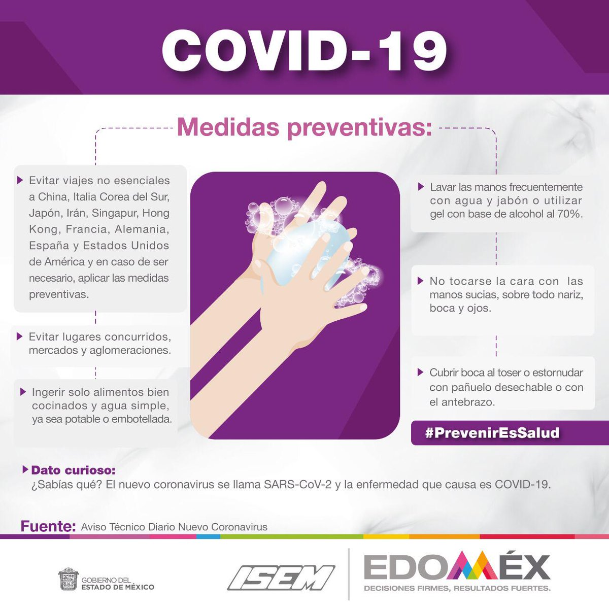 Lava constantemente tus manos con agua y jabón, atiende las siguientes recomendaciones ante el #Coronavirus #COVID19 #PrevenirEsVivirpic.twitter.com/RhNmdUSOQD