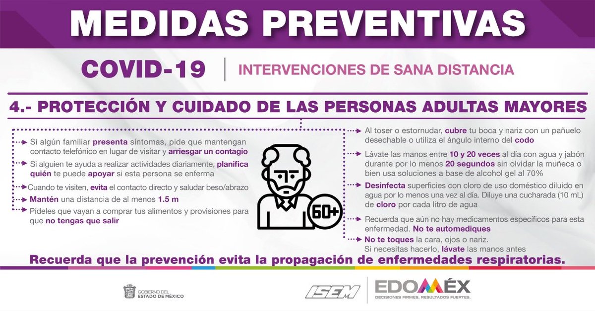 Los adultos mayores forman parte de la población vulnerable al contagio de enfermedades respiratorias, por lo que la @SaludEdomex nos brinda algunas de las medidas preventivas para cuidar su salud #Covid_19mx #PrevenirEsVivirpic.twitter.com/Dy7l1Thda8