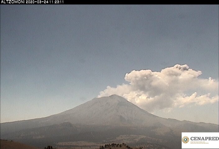 #Exhalación del #Popocatépetl a las 11:17 horas, con contenido bajo de ceniza y una altura de 1,200 metros en dirección al oeste. El semáforo de #AlertaVolcánica permanece en #AmarilloFase2 #PrevenirEsVivirpic.twitter.com/KWROSExayG