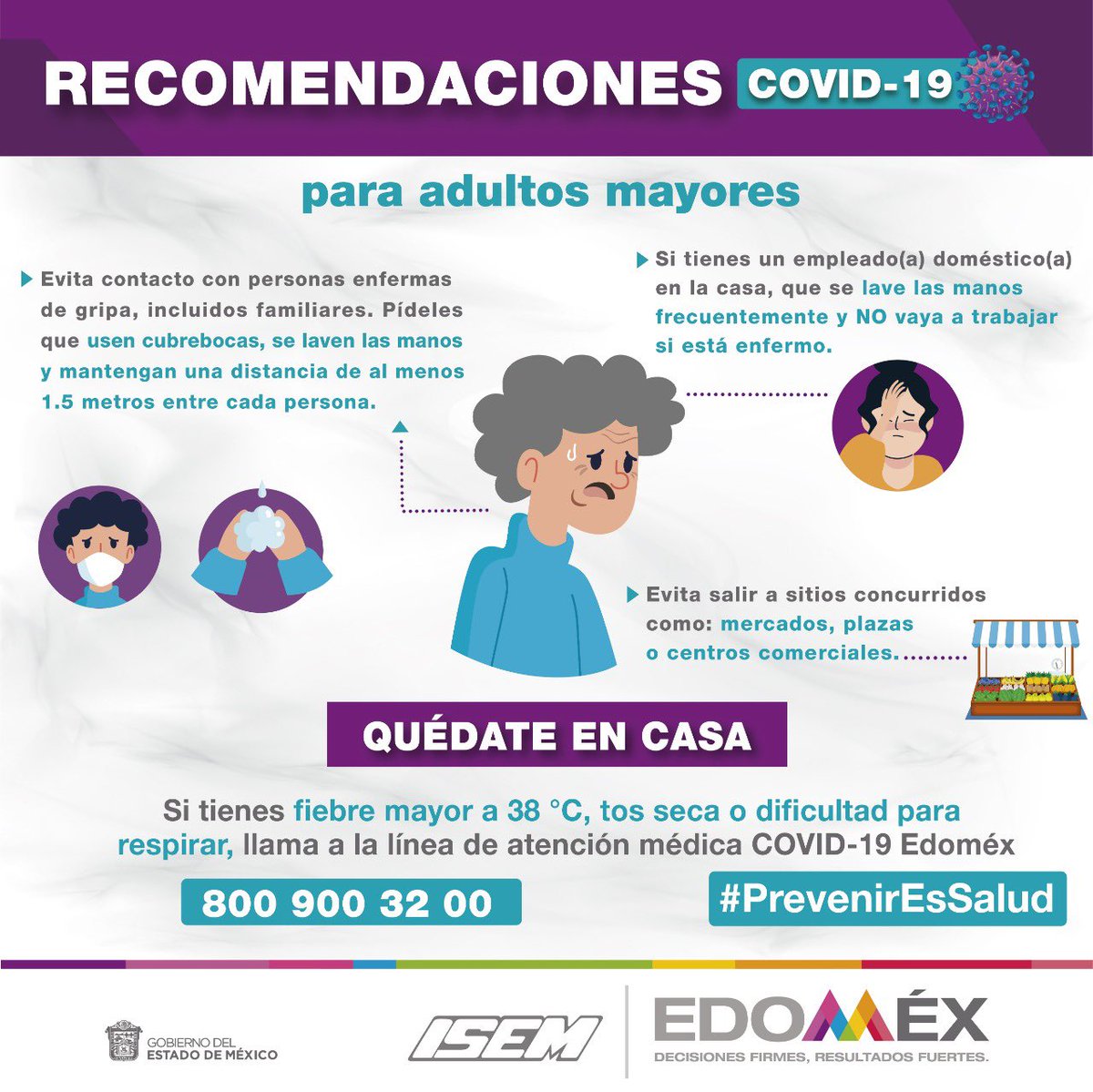 ¡Cuidemos de nuestros adultos mayores durante la contingencia por #Covid_19mx! Ellos también son vulnerables y nos necesitan, por eso sigue estas recomendaciones de @SaludEdomex: