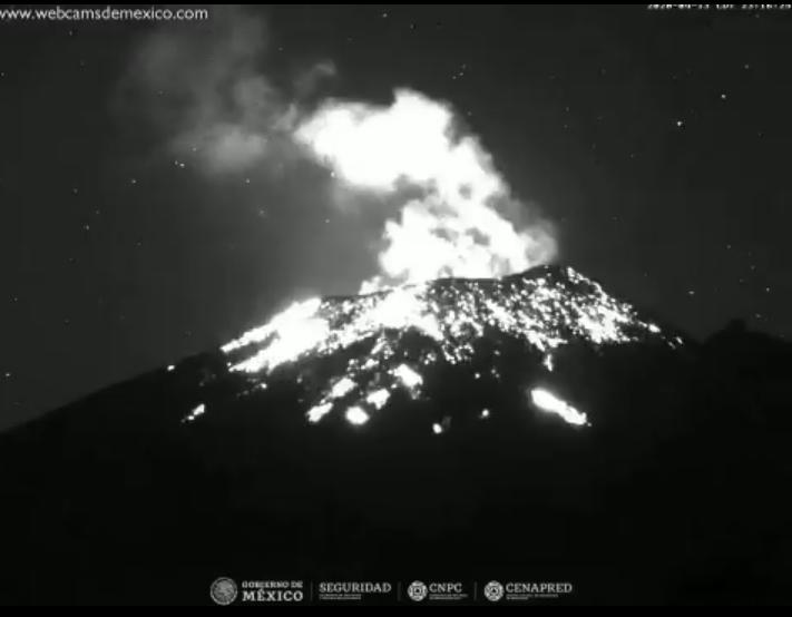 #Explosión del #Popocatépetl a las 23:16 horas, acompañada de fragmentos incandescentes sobre las laderas del #Volcán, con una altura de 1,500 metros con contenido moderado de ceniza y dirección al noroeste. El semáforo de #AlertaVolcánica permanece en #AmarilloFase2.pic.twitter.com/EQcmApstVX