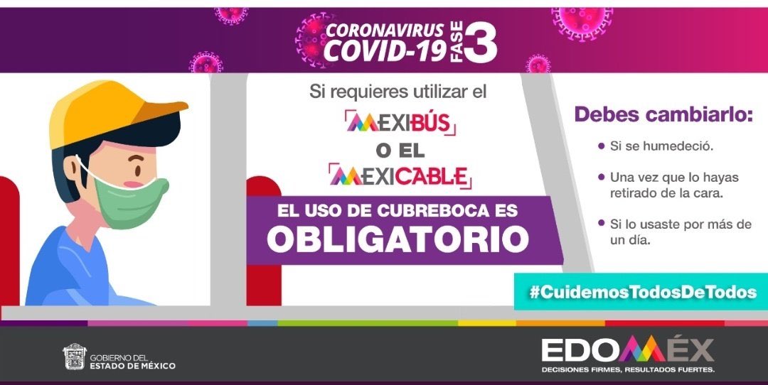 Si requieres utilizar el #Mexibús y/o #Mexicable ten en cuenta que el uso de cubrebocas es OBLIGATORIO, sigue las recomendaciones de personal en turno.