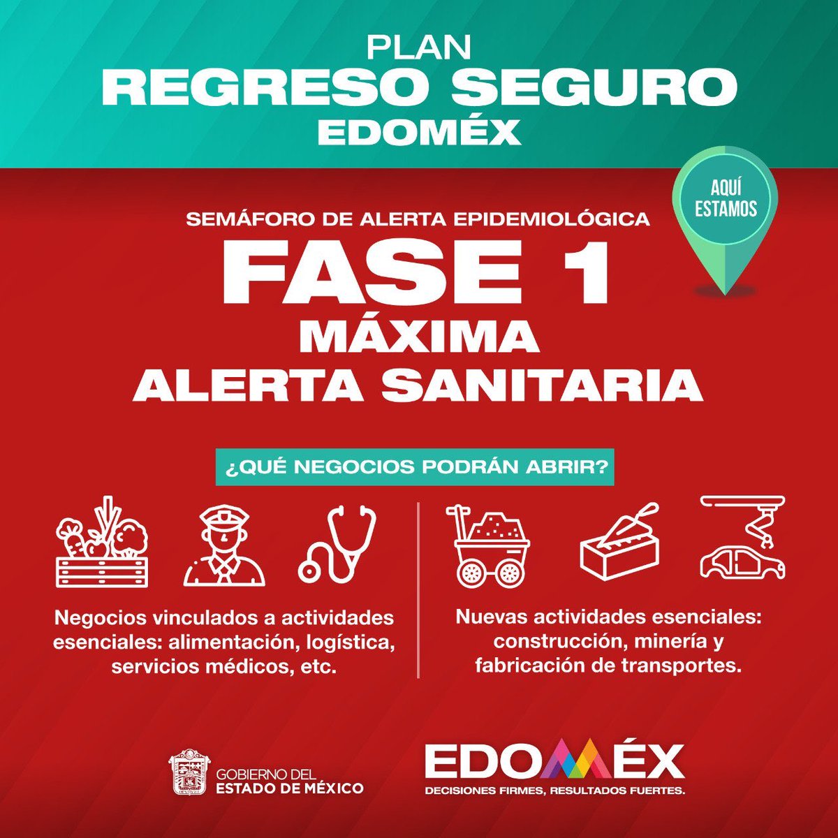 Actualmente nos encontramos en semáforo rojo de alerta epidemiológica Fase 1. Debemos extremar las medidas de higiene, así como la sana distancia y el uso de cubrebocas. #RegresoSeguroEdoméxpic.twitter.com/vivJV4Hr8M