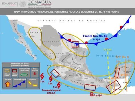 @LUISFELIPE_P: Lunes con afectación de TT#Dalila en Occidente; Onda trop6 en PenYuc y FrenteFrio45 en el Nortepic.twitter.com/478TSSTF8B