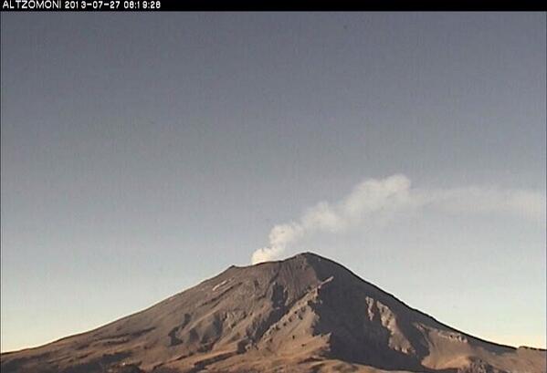Se puede observar en el #Popocatépetl una leve y constante emisión de vapor de agua y gas en dirección al suroeste. pic.twitter.com/xO3M43HaH2"