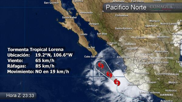 "@conagua_clima: Trayectoria de la Tormenta Tropical Lorena del Pacífico 18:33h pic.twitter.com/cadn8ENrDw"