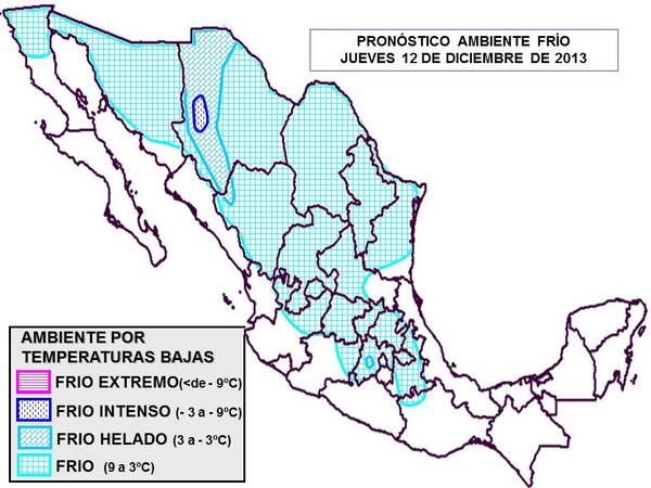 Pronóstico de #AmbienteFrío para mañana jueves. Precaución ante #heladas y bajas temperaturas en lugares señalados.pic.twitter.com/kYihMgepz3