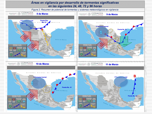 “@conagua_clima: Mapa de pronóstico 96h Desarrollo de 7a tormenta invernal y FF41 pic.twitter.com/YwSiJJNII9”