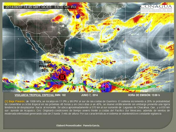 #BAJAPRESIÓN aprox 570km al SSO #LagunasdeChacahua Oax y a 650km SSE #Acapulco Gro +info en: http://smn.cna.gob.mx/index.php?option=com_content&view=article&layout=edit&id=57 … pic.twitter.com/uDaap0gMLi”