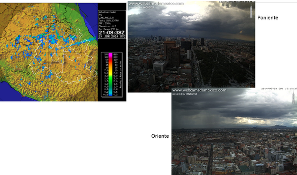“Img radar detecta celdas de #tormenta al poniente y oriente de la Cd de Mexico.Cortinas de lluvia en la región. pic.twitter.com/dlHrRILNMg”