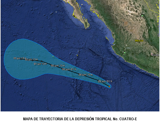 “@conagua_clima: MAPA DE LA TRAYECTORIA DE LA DEPRESIÓN TROPICAL "4-E" pic.twitter.com/XoapCNOfdb”