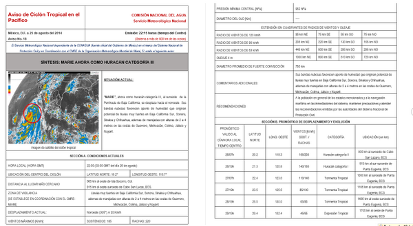 “Aviso de Ciclón Tropical en el Pacífico 22:15h #MARIE AHORA COMO HURACÁN CATEGORÍA III http://smn.cna.gob.mx/index.php?option=com_content&view=article&id=60&Itemid=63 … pic.twitter.com/ydVQ2Tl6ZF”