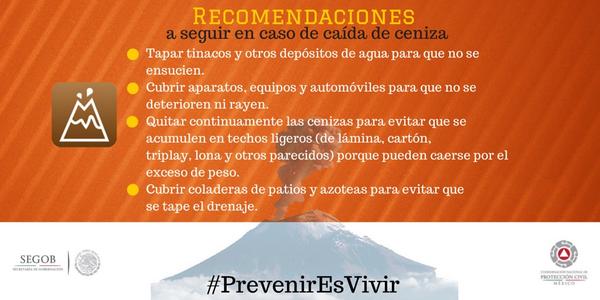 “@LUISFELIPE_P: Recomendación para la población en caso de caída de ceniza #Popocatépetl #PrevenirEsVivir @PcSegob pic.twitter.com/NE6HDbB5UU”