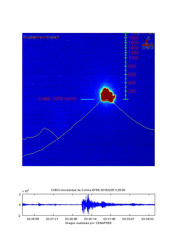 Explosiones registradas del #VolcánDeColima con fragmentos: 23:34 del 24 de febrero, 03:29 y 04:15 del 25 de febreropic.twitter.com/XbbYOqpfML