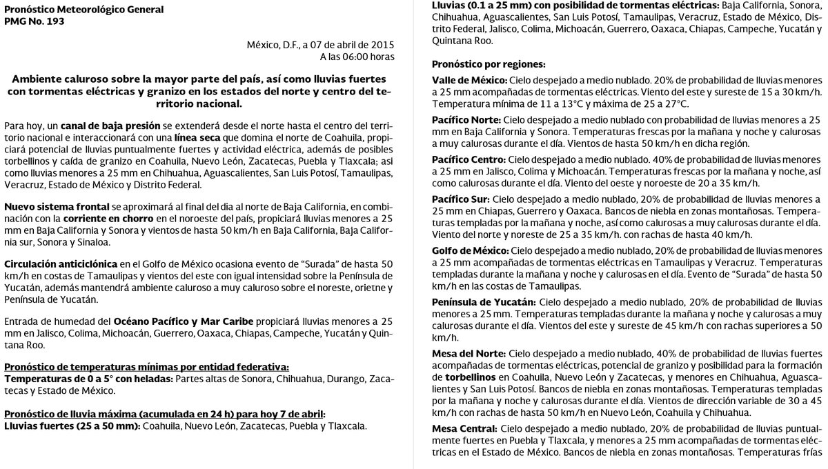 Pronóstico Meteorológico General 06:00 h http://smn.cna.gob.mx/index.php?option=com_content&view=article&id=54&Itemid=57 …pic.twitter.com/mUlY532X24