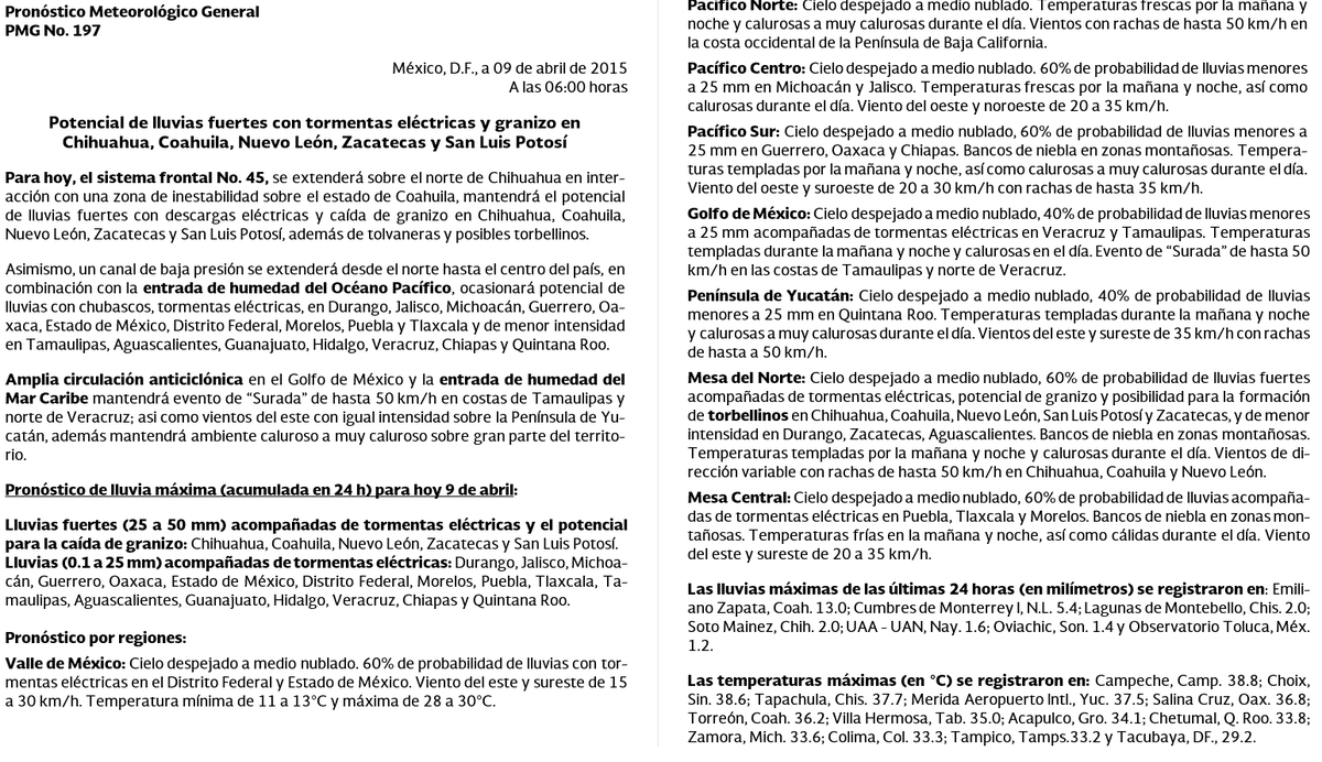 Pronóstico Meteorológico General 06:00 h http://smn.cna.gob.mx/index.php?option=com_content&view=article&id=54&Itemid=57 … pic.twitter.com/vlpwJRem63"