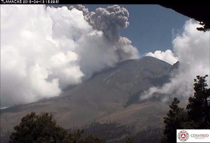Exhalación del #Popocatépetl a las 15:28 Hrs. Columna de #Ceniza con una altura de 1.5km en dirección este-noroeste.pic.twitter.com/ZBwiF0pT2u