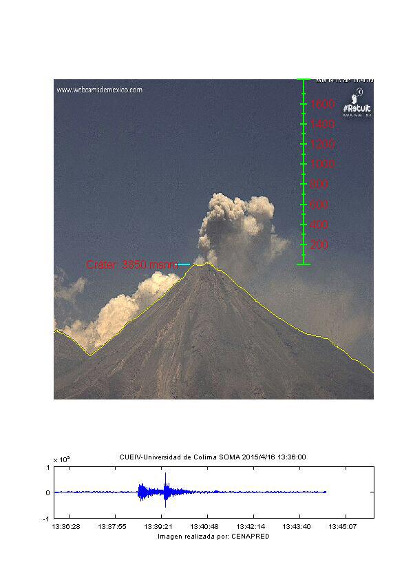 Exhalación del #VolcánDeColima 13:38 hrs. Dirección este-noreste columna de #Ceniza 1000m de altura.pic.twitter.com/EwITuCUfJE