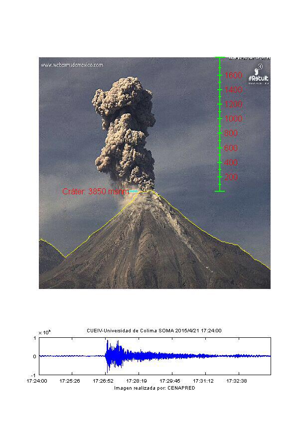 #VolcánDeColima 17:26 Hrs. Columna de #Ceniza de mas de 1 km de altura con dirección Este-Noreste @PcSegobpic.twitter.com/fl8WtWhj44