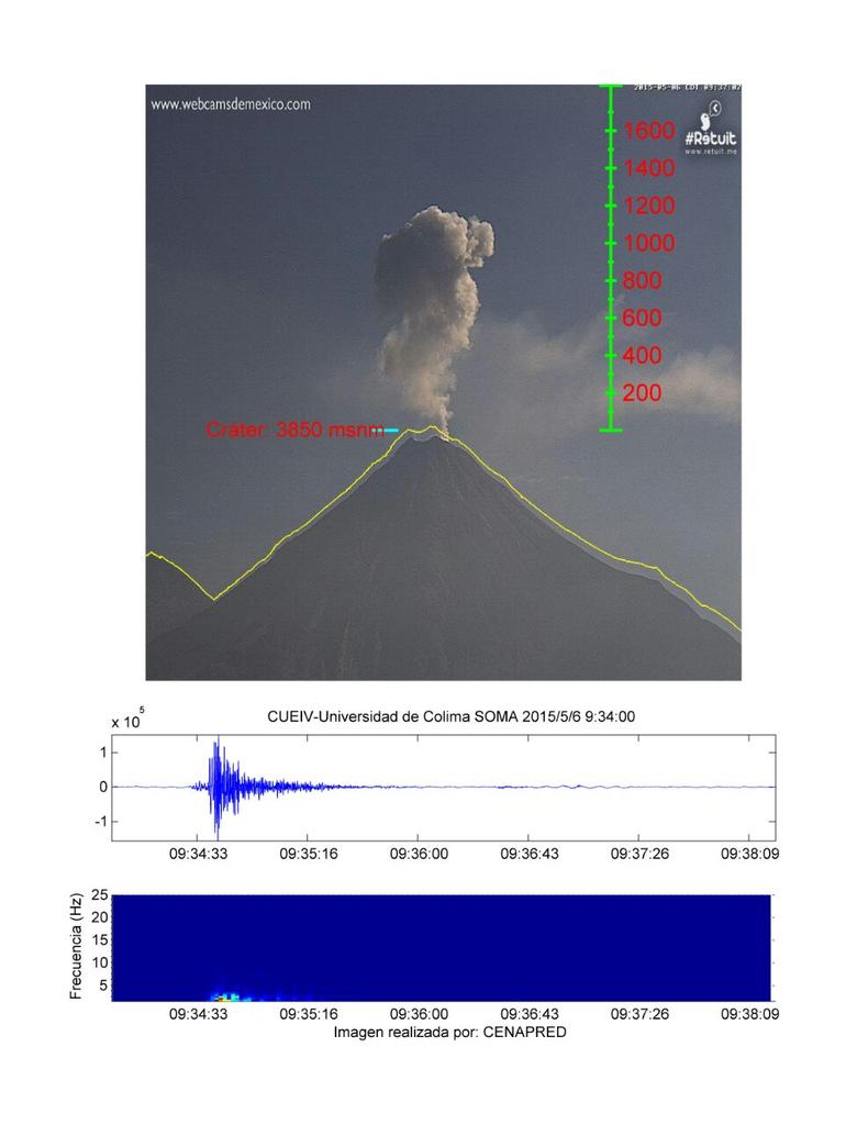 Exhalación #VolcánDeColima a las 9:34 hrs. Columna de 1.2 km, contenido de ceniza bajo con dirección Estepic.twitter.com/fBq2WNa0va