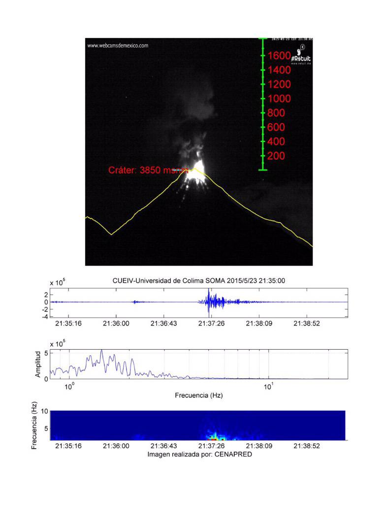 Exhalación del #VolcánDeColima 21:36 hrs. columna de #Ceniza de más de 2 kms con dirección Noreste.pic.twitter.com/vNADnjaMvc