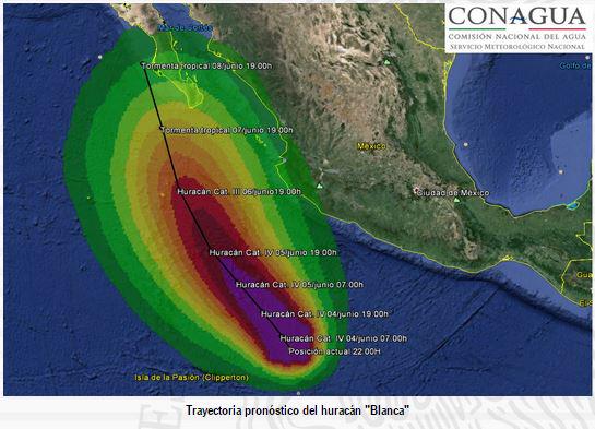 Trayectoria pronóstico del Huracán #Blanca pic.twitter.com/sd9tWTNym6