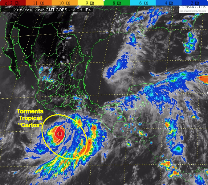 #TormentaTropical Carlos se mantiene estacionaria y se ubica a 405 km al Sur-Sureste de Lázaro Cárdenas #Michoacánhttps://twitter.com/conagua_clima/status/609470713561419776 …