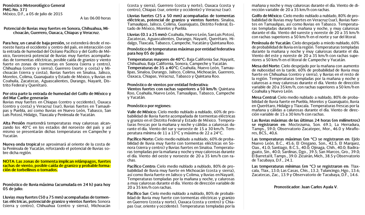 Pronóstico Meteorológico General 06:00 hpic.twitter.com/2tIWf6e5En