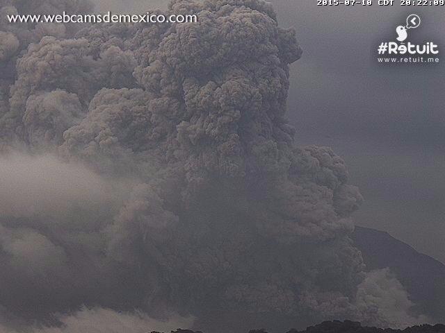 Exhalación del #VolcánDeColima Columna #Ceniza de aprox. 4 km se mantiene permanente monitoreo de su actividad.pic.twitter.com/cD1BxaGj2f