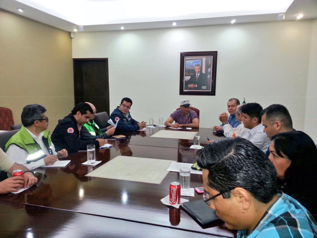 Reunión con el @gobernador_mam y @DelaCruzMusalem de @PcSegob para seguimiento de la actividad del #VolcanDeColimapic.twitter.com/GFk2471OWA