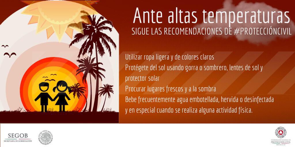 Ante altas temperaturas sigue las recomendaciones de @PcSegob #OndaDeCalor #PrevenirEsVivirpic.twitter.com/IEFs3bYVAz