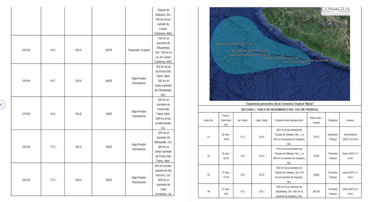 La #TT "Marty" permance muy cerca de las costas de #Guerrero y #Michoacán, con movimiento lento hacia el nortehttps://twitter.com/conagua_clima/status/648972315045203968 …