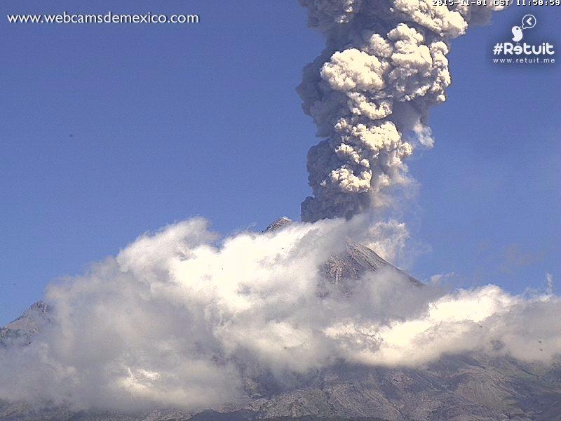 Exhalación del #VolcánDeColima a las 11:48 horas, columna de 1,500 mts, color gris en dirección al estepic.twitter.com/xdO05cCDKE