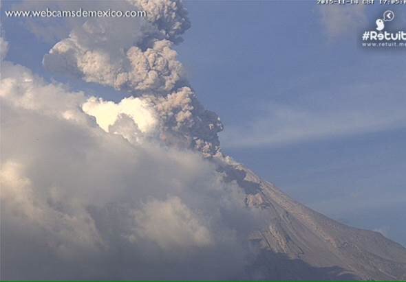 Exhalación del #VolcánDeColima a las 16:59 horas, con una altura de 2,000 metros, en dirección noroeste.pic.twitter.com/2wO6hiD32W