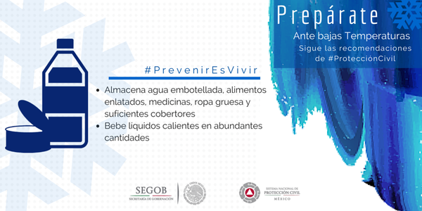 Almacena cobijas, alimentos, agua, productos de aseo, botiquín y un radio con baterías este #Invierno2015pic.twitter.com/CsHnR7pmQj