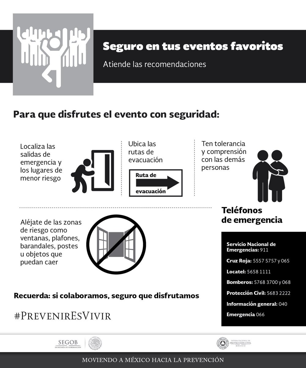 Recuerda que al finalizar un evento masivo debes evacuar en orden, siguiendo las indicaciones de las autoridadespic.twitter.com/64iLd9qS3M