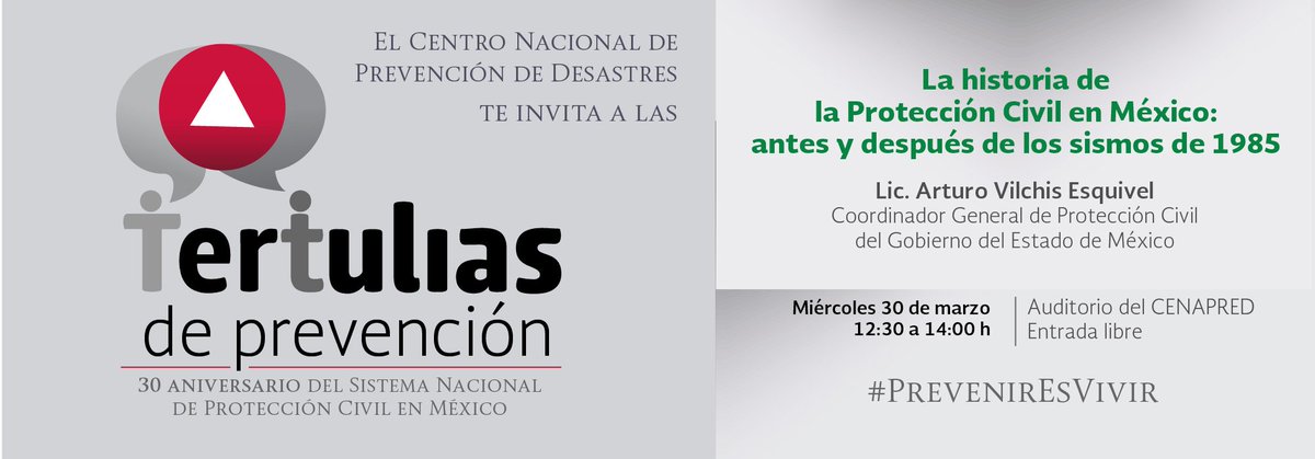#CENAPRED te invita al nuevo ciclo de Tertulias para conmemorar los 30 años del #SINAPROC http://www.cenapred.gob.mx/es/documentosWeb/Noticias/tertulias_general.pdf …pic.twitter.com/FYW0tvVoVZ