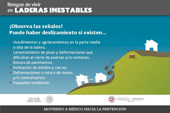 Ante la lluvia constante los deslizamientos de #Ladera pueden presentarse ¡Mantente alerta!pic.twitter.com/U0vjJPAmmf