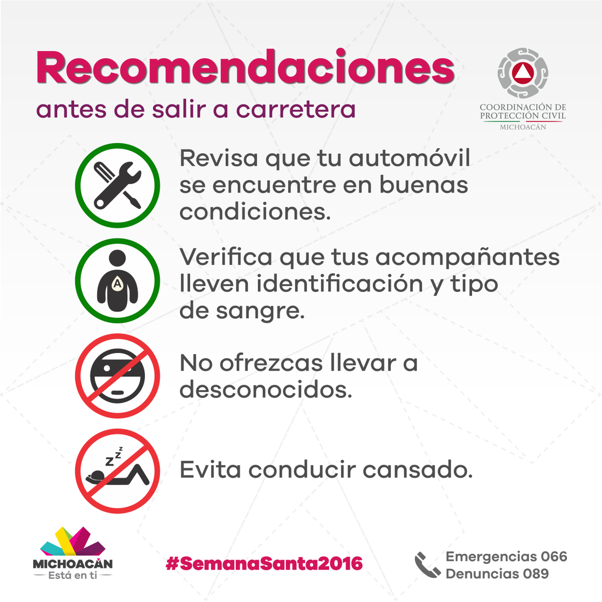 Evita conducir cansado. Sigue recomendaciones de #ProtecciónCivil @pcmichoacanhttps://twitter.com/GobMichoacan/status/712712401997529088 …
