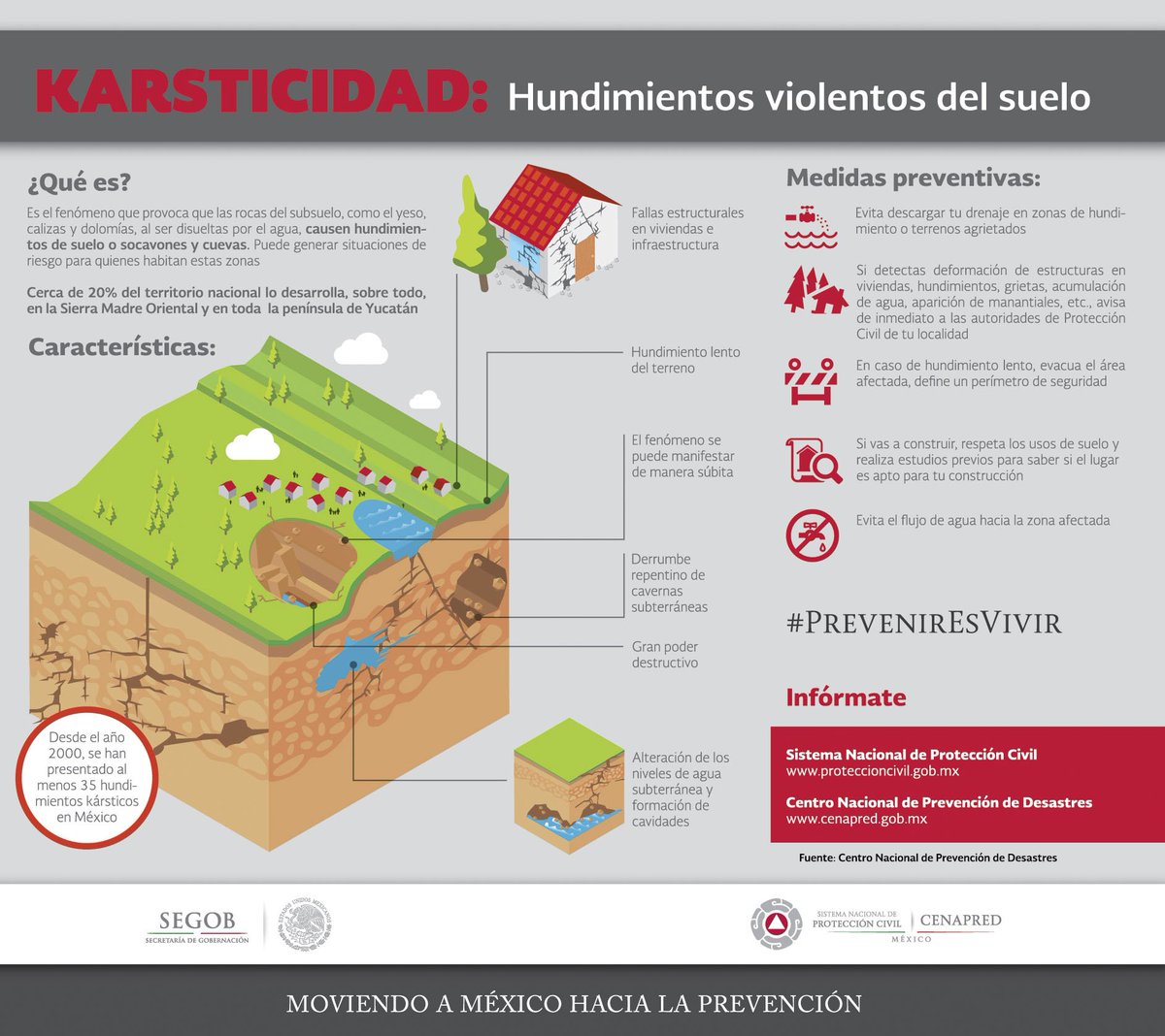 #Karsticidad Evita descargar tu drenaje en zonas de hundimiento o terrenos agrietados #PrevenirEsVivirpic.twitter.com/dVWUKLB2Eo